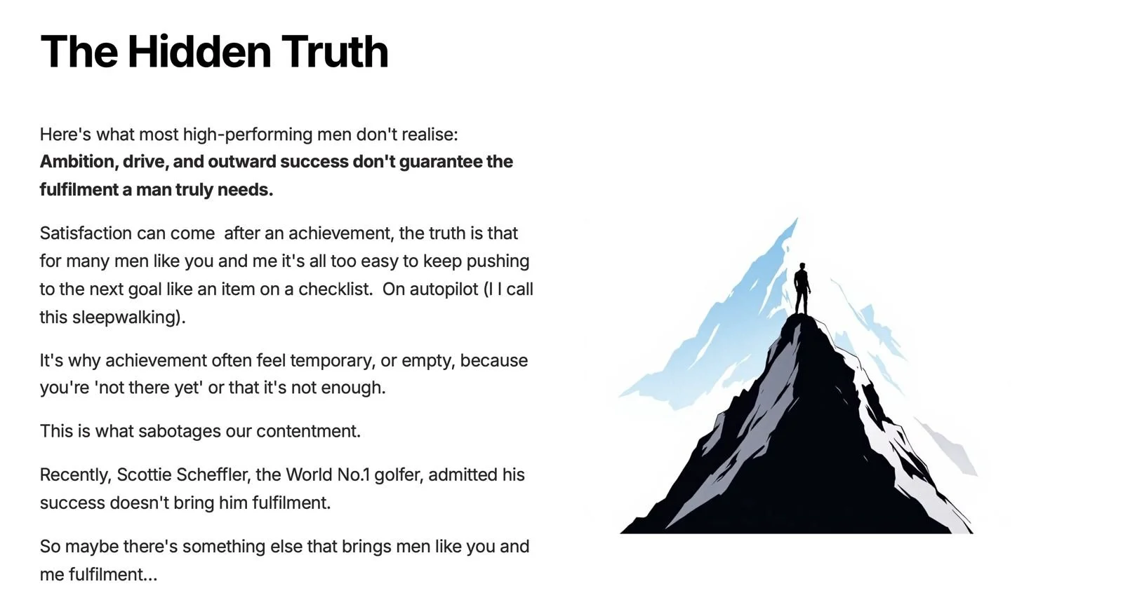 I help high-achieving men who look like they’ve got it all together but feel ‘off’, disconnected in their relationships, and unsure what they’re working so hard for. There’s something missing. They’ve somehow drifted off course.